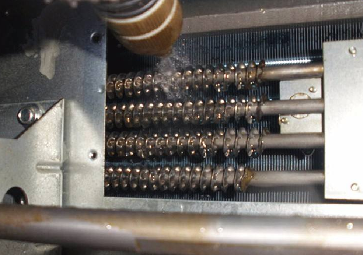 盤管承擔著將冷(熱)量的冷(熱)水轉移到通過風機盤管的空氣中的重要任務。為了確保高效傳熱,線圈表面必須盡可能保持清潔。然而,由于風機盤管裝置通常配備有帶有相對較大孔的粗效過濾器,當首次使用時,灰塵將不可避免地穿過過濾器并粘附在盤管裝置的管道或翅片表面上。如果不及時清洗,盤管中的冷(熱)水和從盤管中流出的空氣之間的熱交換將會減少,盤管的熱交換效率將無法充分發(fā)揮。如果有大量灰塵附著,甚至肋之間的一些空氣通道被堵塞,風機盤管的供氣量將同時減少,從而進一步降低空調性能。